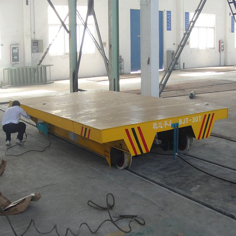 軌道行走平板車是一種軌道廠內短途運輸工具車,解決車間廠內跨度間的產品、貨物運輸搬運。產品結構簡易、使用維護方便、承載重量大等優點。產品用途廣泛,作為車間內部配合吊車、叉車運輸重物過跨之用